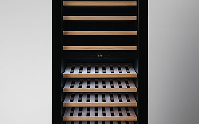 The black tinted, triple-glazed glass is designed to block UV light which shields wine from excessive exposure, reducing chemical reactions that could compromise the delicate bouquet and result in off-flavours.