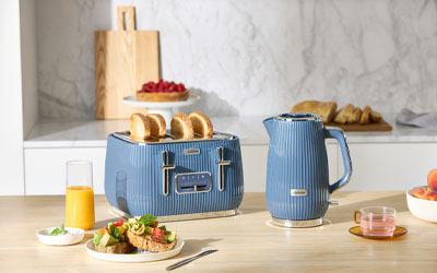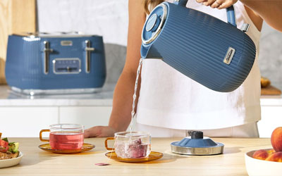 Elevate your kitchen with the Radiance Collection 1.7 L kettle. With the collection's sleek linear textured design, glossy finish and pop of blue, add a stylish statement piece to your bench top and brighten up your mornings.