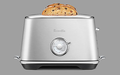 The Toast Select Luxe with 6 bread settings - White, Brown, Grain, Fruit, Rye and Crumpet adjusts the toasting time for each type of bread.