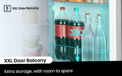A big door balcony lets you safely store bigger & taller items inside the door. It can handle bulky cartons of milk and juice or even two rows of cans or bottles of drink.