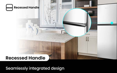 The metal recessed handles elevate the refrigerator’s appearance and ensure the whole family can access the fridge effortlessly.