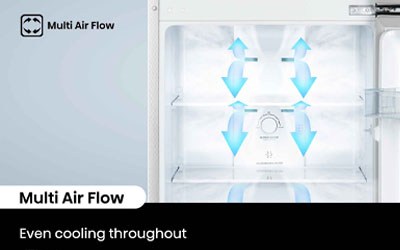 Thanks to the even distribution of cold air achieved by the Multi Airflow System, the optimal temperature is consistently maintained throughout your refrigerator. It helps keep your food chilled to perfection no matter where it is placed.