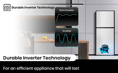 Fridges with Inverter Technology can help you save energy and, in turn, save you money. Inverter Technology monitors the conditions inside your fridge and manages the output accordingly, ensuring a more stable internal temperature, which helps extend the life of your appliance and reduce the amount of energy used by your appliance.