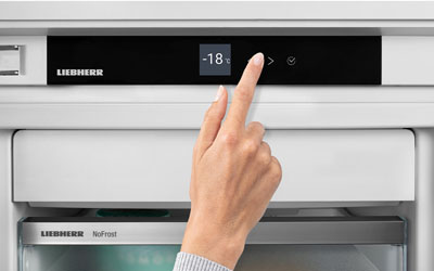 Fingertip control: the touch display enables easy and intuitive operation of your Liebherr. All functions are clearly arranged on the display. By gently tapping a finger, for example, you can easily select the functions or check the current temperature of your refrigerator.
