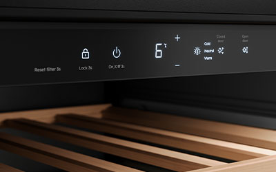 The double-glazed door with anti-UV glass ensures protection from UV rays and prevents your wine spoiling due to light damage. It creates the optimal environment for your wine's maturation.