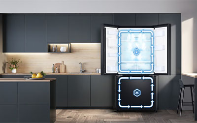 Separate refrigerator and freezer cooling systems help maintain temperature and optimal humidity, and minimise the mixing of odours between the fridge and freezer compartments.1