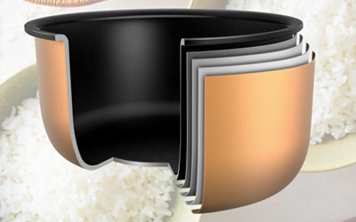 The 4 mm thickness1 and far-infrared effect of the Binchotan charcoal layer delivers heat to the core of each rice grain to cook aromatic, delicious rice.