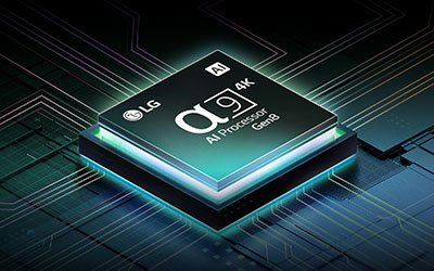 This processor is the brains behind a truly unforgettable TV experience. You'll get personalized smooth, vivid picture no matter what you watch. AI Super Upscaling{{1} technology automatically enhances picture quality whether you're watching sports, movies, or a late-night favorite. Everything looks and sounds incredible on a LG OLED TV.