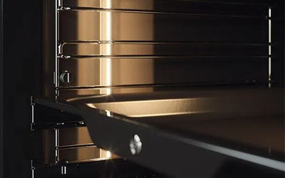 Dealing with large and heavy hot oven dishes can be awkward and risky. No matter how heavy and hot your dishes are, our easy-gliding fully extendable telescopic guides make loading and unloading convenient and safe by removing the need to reach into a hot oven. The fully extendable telescopic rails in ASKO ovens also reduce the risk of spilling or dropping food.