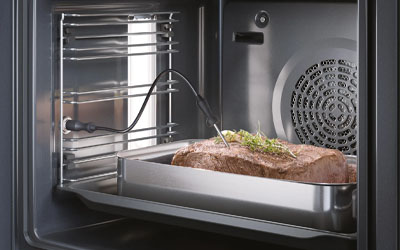 When roasting meat, timing is everything to getting it right. PerfectRoast plus takes the guesswork out of knowing when your dishes are perfectly tender. The meat probe uses three measuring points to check the temperature of your meat from within. When the ideal internal core temperature is reached, your dish is roasted to perfection. The sensor can even tell you how many minutes are left until your dish is ready. So you can time your meals to perfection.
