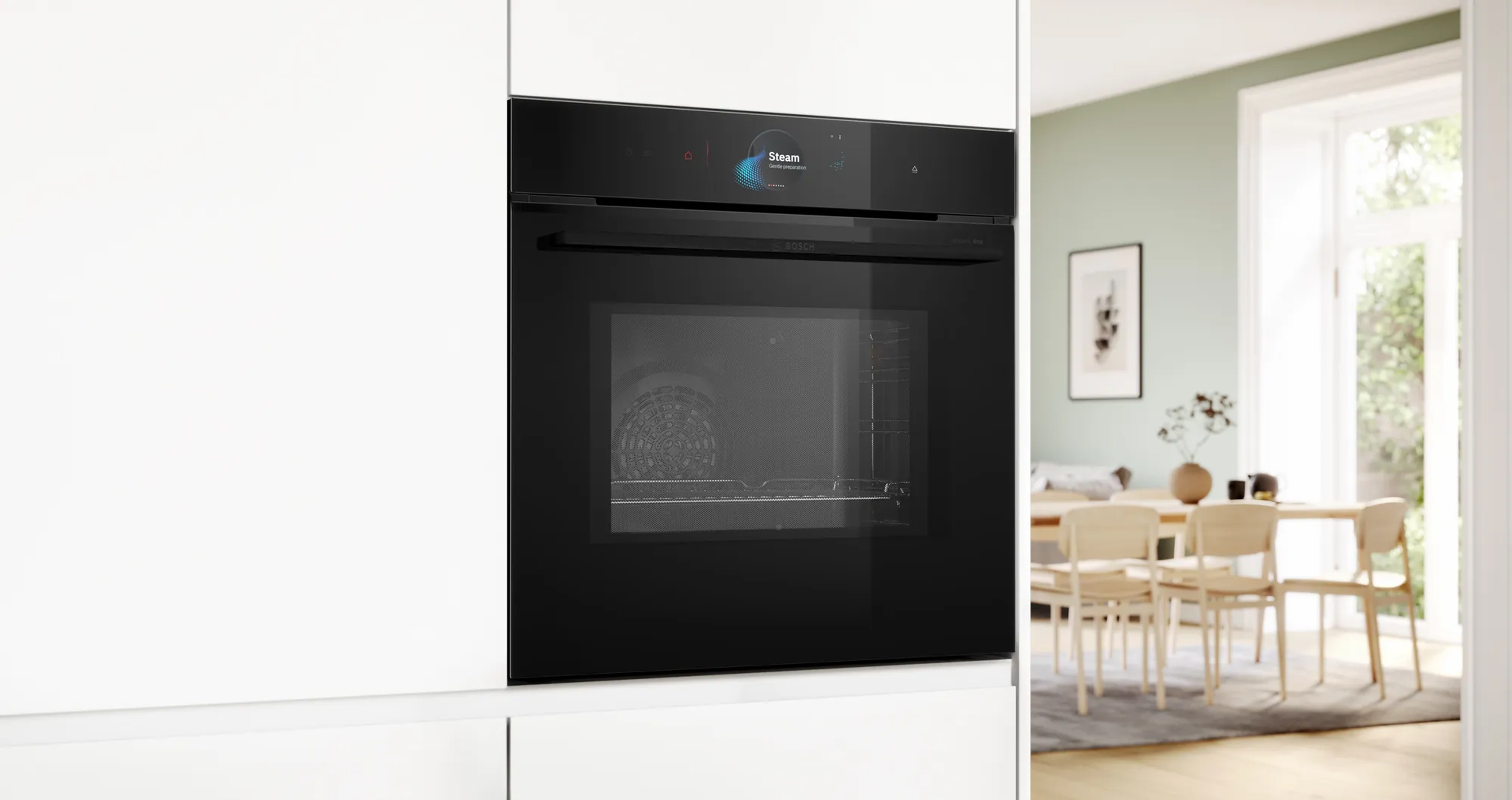 The built-in microwave oven with Digital Control Ring and TFT-touchdisplay, PerfectBake Plus, PerfectRoast Plus, integrated camera and added steam, Home Connect for control via the App.