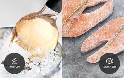 At the touch of a button, Power Cool blows intensely cold air into the fridge, so foods and drinks are chilled quickly. And Power Freeze delivers a fast blast of cold air into the freezer. It's great for freezing or firming up frozen food, like ice cream, and making more ice.4