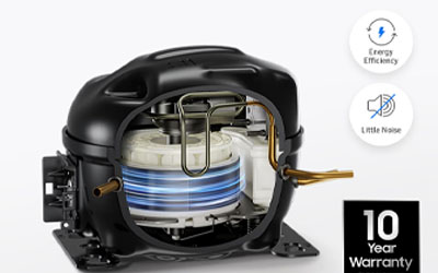 Keep food consistently cool and save energy. The high-efficiency Digital Inverter Compressor's improved structure means its inertia is 4.1x higher than existing compressors5, so it uses less energy, especially when maintaining a constant temperature. And the compressor has a 10 year warranty6