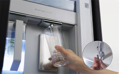 Enjoy plenty of refreshingly cold and flavoured water. The Beverage Center™ is inside the fridge, so it is less likely to get contaminated. As well as a water dispenser, it has a dishwasher safe1 and BPA free2 1.4L AutoFill Water Pitcher for purified water, which can be infused with fruits or herbs.