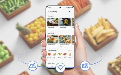 SmartThings App Enabled2. Connect your refrigerator to your smartphone through the SmartThings App to manage food, recipes, energy monitoring and troubleshooting. Take care of your food and your refrigerator easily.