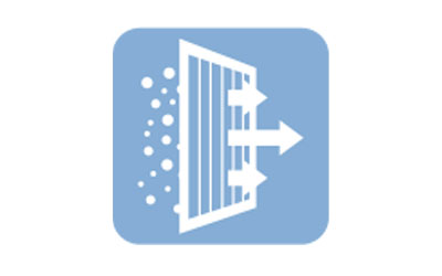 The EcoCore AP Series is equipped with an Air Purifying Filter. This washable filter traps particles such as dust, pollen and other airborne contaminants, generating stable antibacterial and deodorising effects. The size of the three-dimensional surface has been increased from previous models, enlarging the filter capture area. These features give the Air Purifying Filter better dust collection performance than conventional filters.