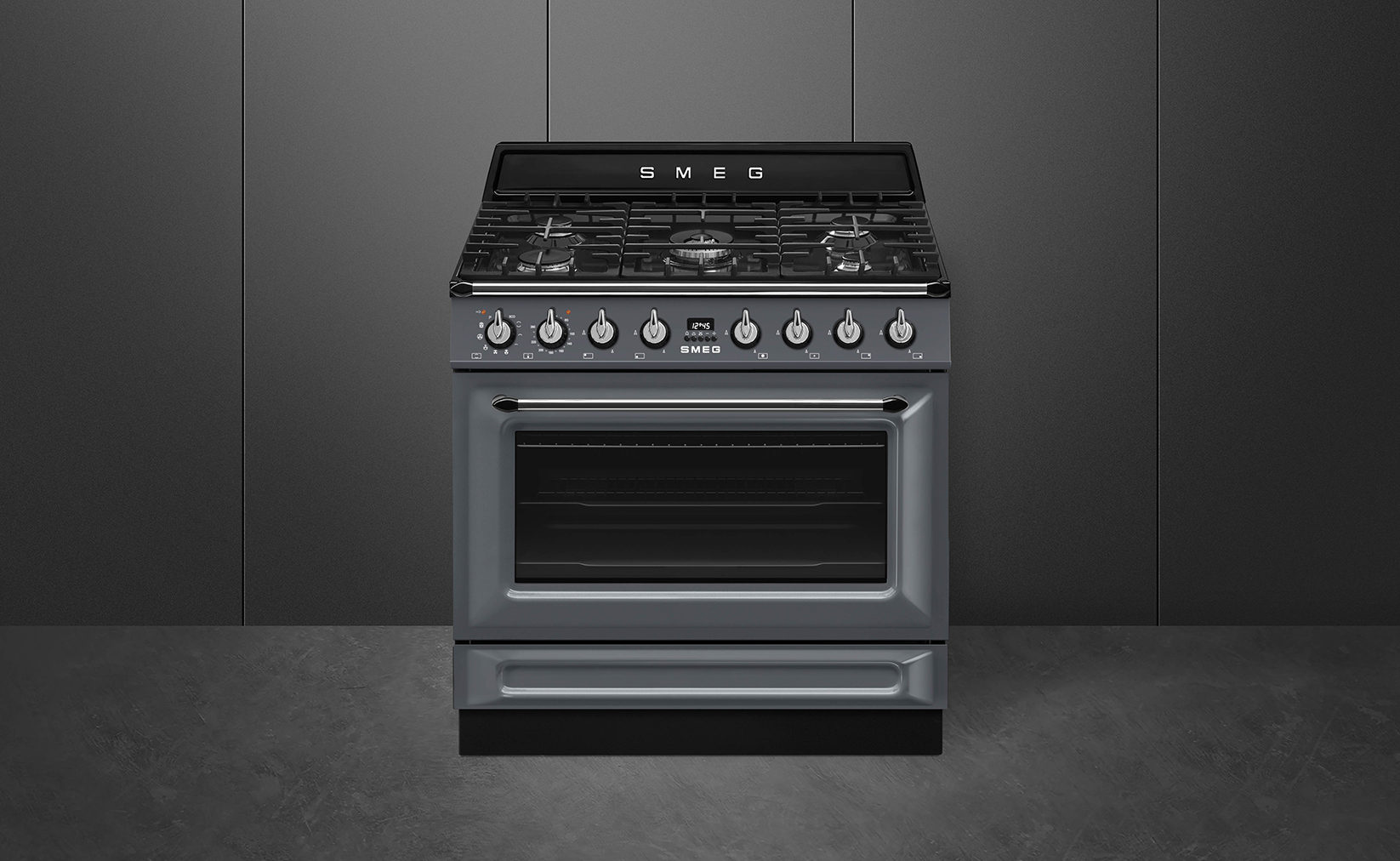Smeg 90cm Victoria Pyrolytic Freestanding Cooker, Slate Grey TRA90GPGR
