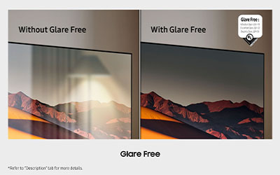 2 The QN90F has been independently verified as Glare Free: Reflection Glare UGR <10, Discomfort Glare UGR <22, Disability Glare UGR <34 by UL LLC. (UL Solutions), Certificate Number: V166045 – Exp. 31/12/2025.