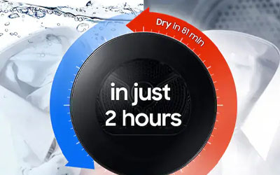 Get small, mixed loads of cotton and synthetics up to 5kg dry in just 81 minutes2when you're in a hurry. Or pair with the Super Speed wash cycle in our QuickDrive™ washers and your clothes can be washed and dried in as little as 2 hours.
