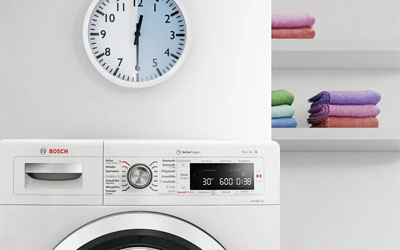 Just delay the start of the washing cycle to get your laundry ready when you need it. If you are going to bed you can simply delay the start-time to get it ready in the morning. With the Bosch washing machines with TimeDelay Function can select the time within the next 24 hours when your laundry needs to be ready.