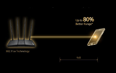 With the latest WiFi 6(802.11ax) standard featuring OFDMA technology, RT-AX54HP provides increased WiFi signal range and better coverage by dividing each channel into smaller sub-channels. These sub-channels have a smaller bandwidth that enables them to travel up to 80% farther1, resulting in a better WiFi connection throughout your home.