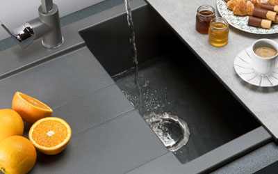 Constructed from 80% quartz sand and 20% very hard acrylic resin, a Franke Fragranite sink will make a statement in any kitchen with its subtle shine. Ideal for the active family, this material repels bacteria with a patented Sanitized coating, and it resists temperatures of up to 280° Celsius. Available in LHD and RHD configuration.