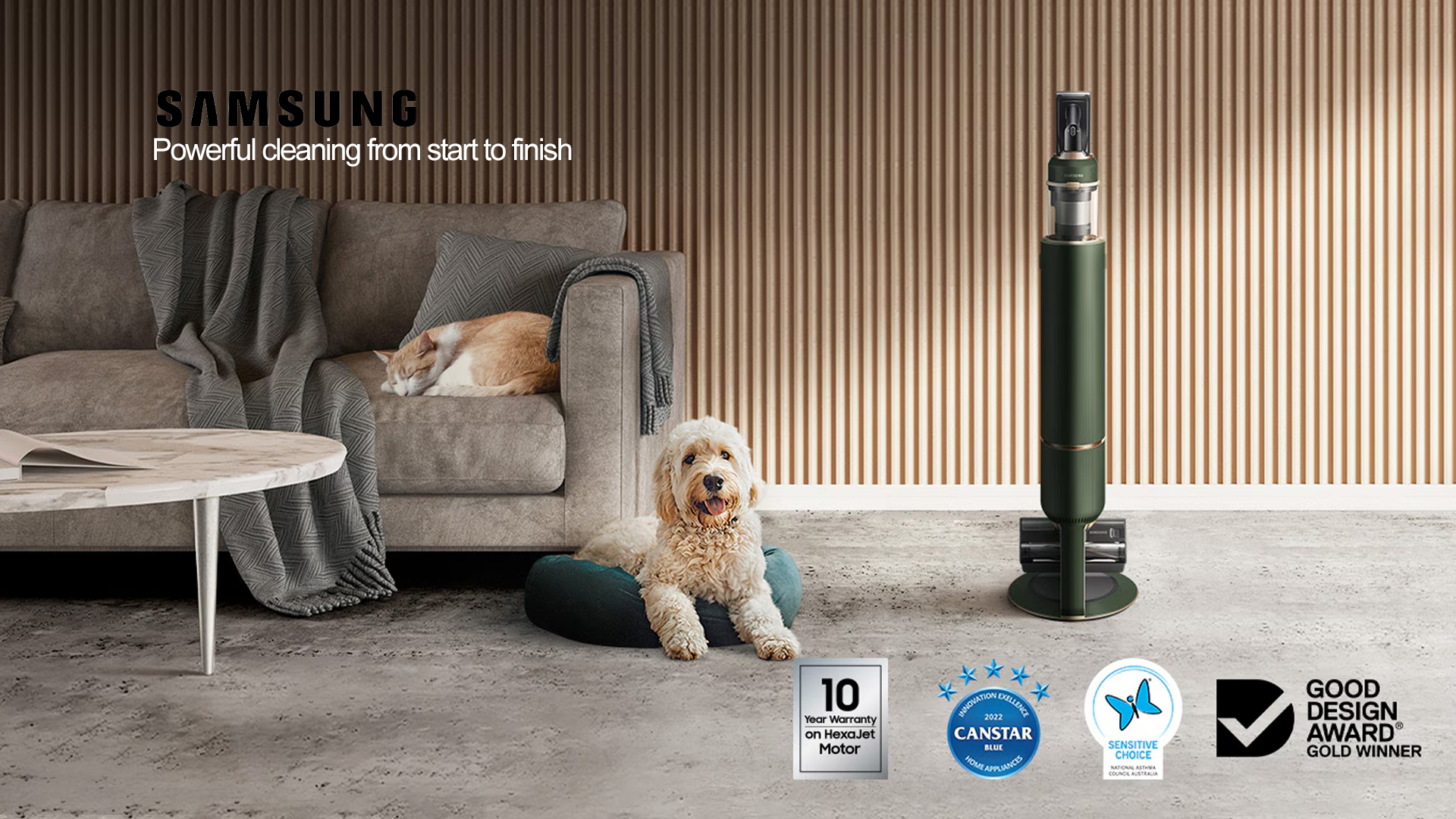 It's designed to look good in your home too, not just hide in a cupboard. Samsung backs the motor with a 10-year warranty, which tells you something about how long this machine is built to last. For a cordless vacuum, that kind of confidence from the manufacturer is reassuring.