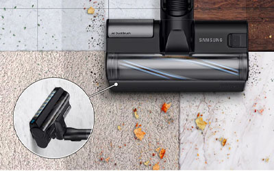 Enjoy outstanding cleaning on almost any surface. The Jet Dual Brush's soft roller helps pick up large dust* particles on hard floors while nylon and rubber bristles help improve performance on carpets.