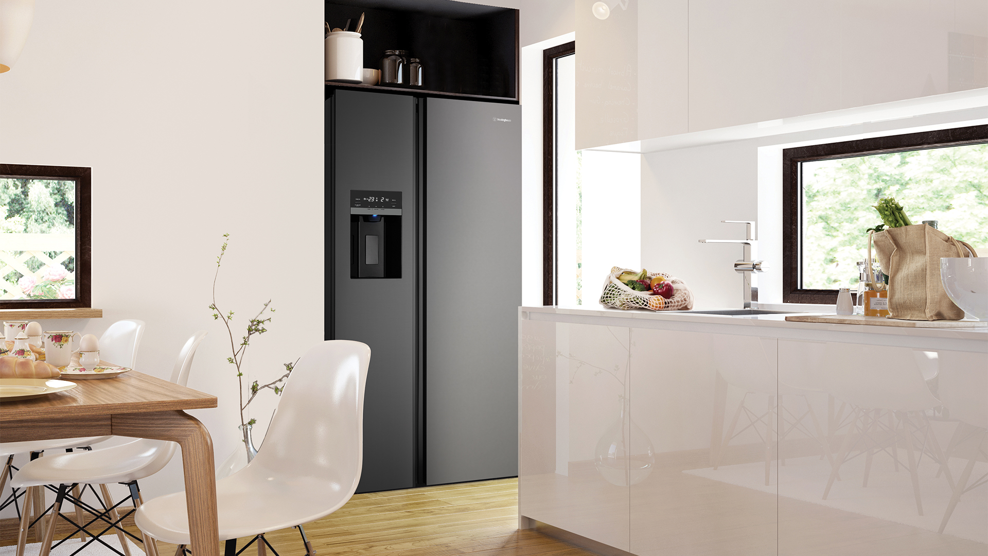 The sleek matte black finish suits contemporary kitchens, while the side by side layout makes loading and unloading shopping much easier than bending down to a bottom mount fridge. At 91cm wide, it provides serious storage capacity without overwhelming your kitchen space, and the reliable Westinghouse build means years of dependable cooling.