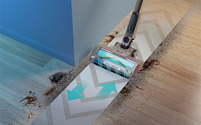 While most vacuums tackle debris only when moving forward, the DuoClean Detect™ nozzle picks up debris in both forward AND reverse for faster cleaning.