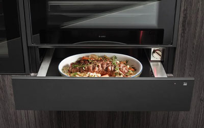 With a warming drawer you can easily keep the food warm until your guests arrive and you are ready to serve. You can also use the drawer to reheat your food.
