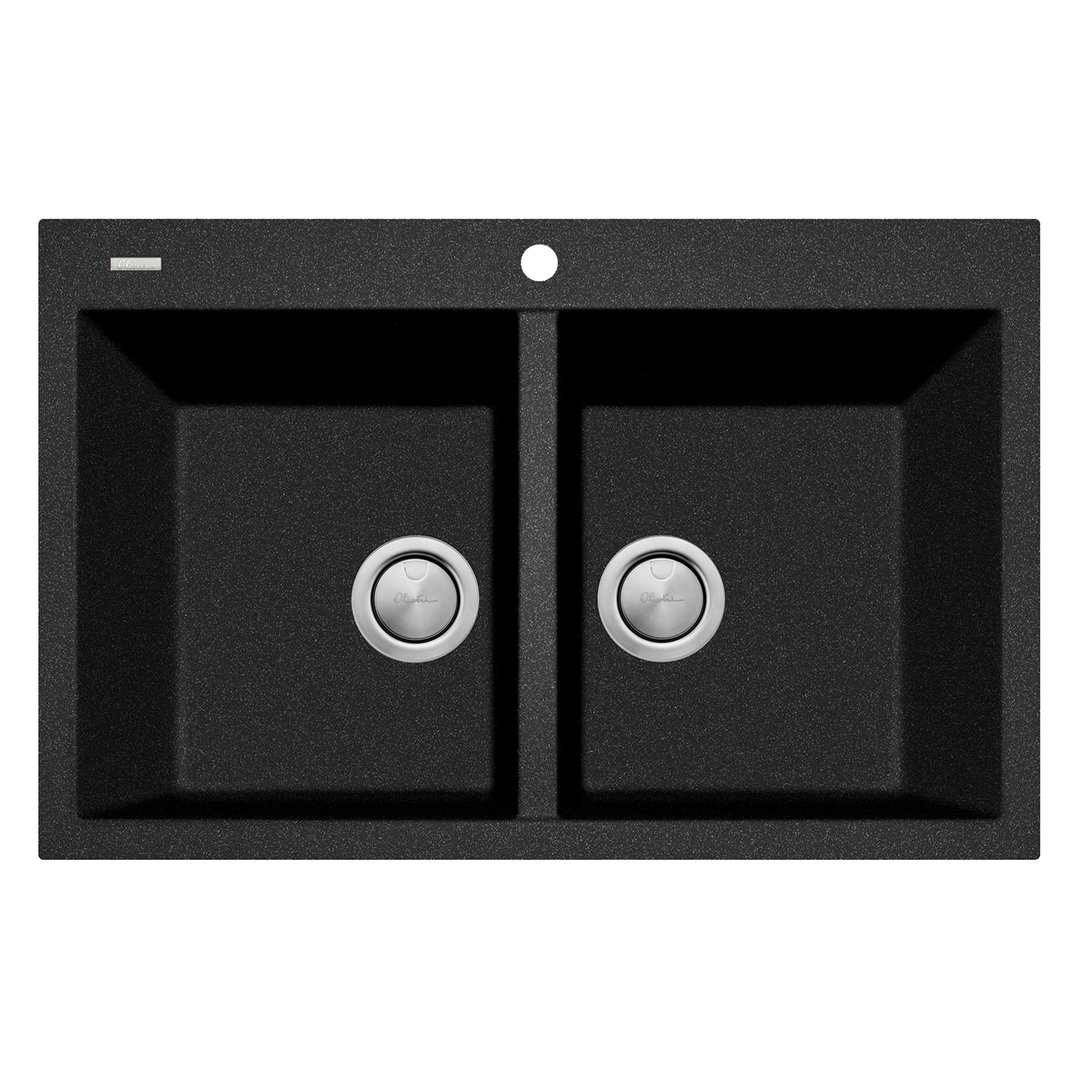 Oliveri Santorini Black Piccolo Double Bowl Topmount Sink, Black ST-BL1574