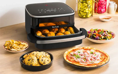 Tefal Extra-Crisp air frying technology and double heaters ensure crispy, mouth-watering results ready in no time.