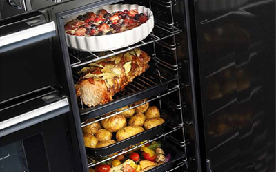 Falcon 90cm double oven upright range cookers feature one main left hand oven and a tall oven on the right. Looks are certainly deceiving when it comes to this space – you will be surprised just how much food can fit in this cavity. The tall oven is supplied with four wire shelves which are adjustable to suit cooking height requirements.