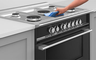 Your cooktop simply needs a quick wipe to keep it looking good as new for years to come, as the gas cooktop is made from a single piece of stainless steel that contains spills. The oven door, its inner pane of glass and runners can also be removed for easy cleaning.