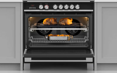 The generous 140L total capacity oven gives you plenty of space to cook multiple dishes at once. Every detail has been carefully crafted. The solid, perfectly balanced soft-close door, durable cooktop and glowing halo dials all add up to an exceptional, premium range.