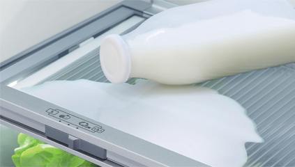 Spill-safe secure glass shelves easily capture any drips or leaks and prevent them from falling on items below.