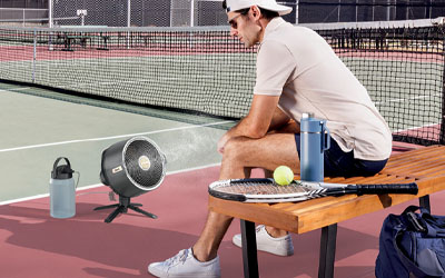 Easily switch from pedestal to tabletop and mist outdoors in either mode.