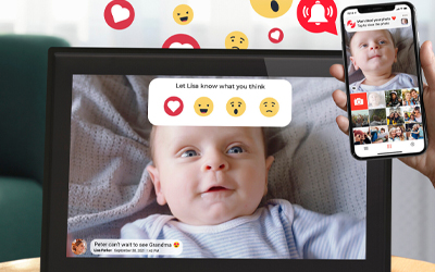 Make shared moments more meaningful by sending fun reactions to photos directly on the frame, enhancing the experience and showing your love in real time.