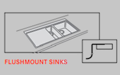 Flushmount sinks feature a single thickness edge allowing a slimfit to the benchtop which can also be recessed resulting in a flush fit with the surface.