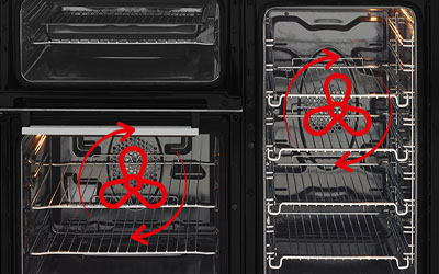 Our range cooker's two fan ovens give you plenty of extra space for cooking larger meals all at once. The heating element surrounding the fan offers uniform heat throughout each oven for quick and even cooking results.