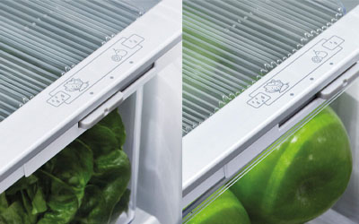 Your fruit and vegetables need different environments. The humidity control slides in each storage bin create a microclimate that helps to keep food fresher for longer.