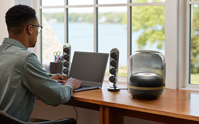 Backed by decades of engineering expertise, discover the perfect combination of iconic design and exceptional audio. Enjoy consistently rich bass from the impressive dome subwoofer. And the two satellite speakers each have four drivers, for room-filling, clear, vibrant sound.