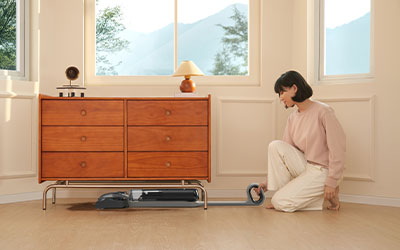 Allows to compress to just 13 cm1, effortlessly cleaning dust under beds and in tight spaces. The suction power stays consistent even when laid flat.