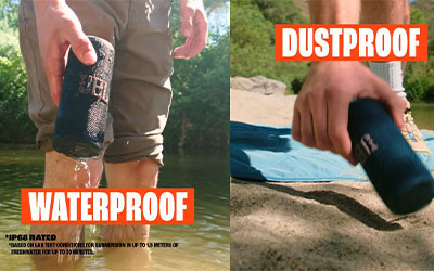 We designed the JBL Grip to handle the bumps and bruises of everyday fun. Along with its waterproof and dustproof IP68 rating, it’s also drop-proof—built to keep playing even after a 1-meter drop onto concrete.