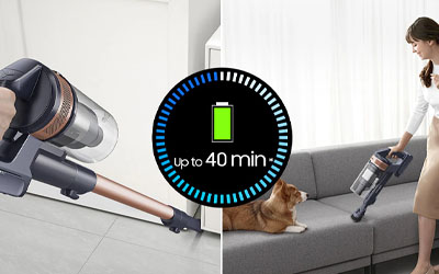 No need to rush while vacuuming! A powerful battery maintains suction for up to 40 minutes of uninterrupted cleaning. You can even double your cleaning time without recharging - simply replace the battery in use with a spare one and extend your cleaning time to up to 80 minutes.