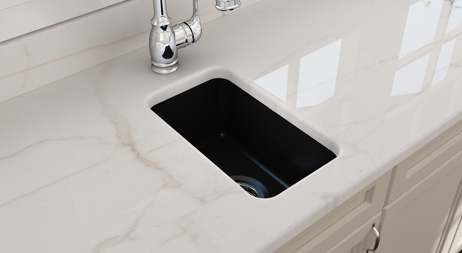 The Cuisine 30 is perfect for the modern kitchen, butler’s pantry, or bar. It has been intelligently designed to be installed either inset or undermount. Install undermount for a great preparation sink! A matte black glazed finish finishes a kitchen or similar application in a luxurious style. Match it up with one of the other two square-shaped sinks in the range and place them side by side for a bowl-and-a-half design.