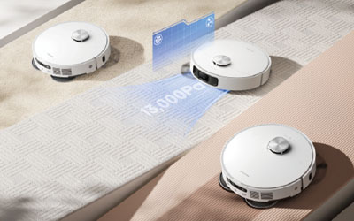 Unleash powerful 13.000Pa suction to tackle dirt and hair. The floating rubber brush easily manages hair. while ultrasonic carpet recognition and mop lifting enhance carpet and rug cleaning.
