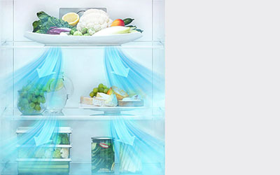 Cold air surrounds your food from both the front and back for effective cooling - quickly reducing the temperature of those items stored at the front of the fridge, and helping keep food fresher for longer.