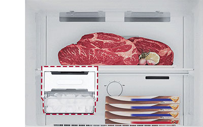 Nifty movable twist ice maker can be removed when more freezer space is needed.
